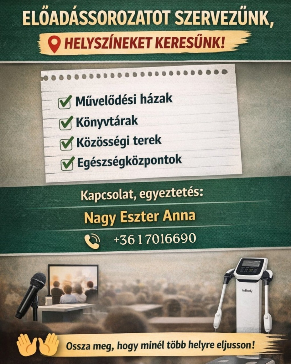 Ha szeretné, hogy az Ön városában is megvalósuljon az előadás, vagy helyszínt tud biztosítani: