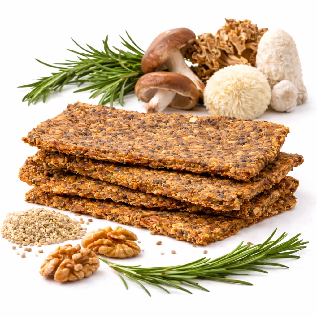 A quinoa, a különféle olajos magvak és diófélék komplex textúrát és telt ízvilágot biztosítanak, miközben természetes módon tartalmaznak telítetlen zsírsavakat. Ezek az összetevők a növényi alapú táplálkozás kedvelt elemei, így a termék vegetáriánus és vegán étrendbe is jól beilleszthető. A rozmaring karakteres aromája különleges, mediterrán hangulatot kölcsönöz a szeleteknek. A receptúrában található növényi rostok és β-glükán-tartalmú gombakivonatok a változatos, rostban gazdag étrend részeként kapnak szerepet.